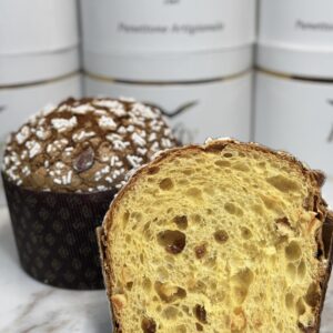Il panettone della tradizione, preparato con un impasto soffice e profumato ottenuto da una lunga lievitazione naturale.